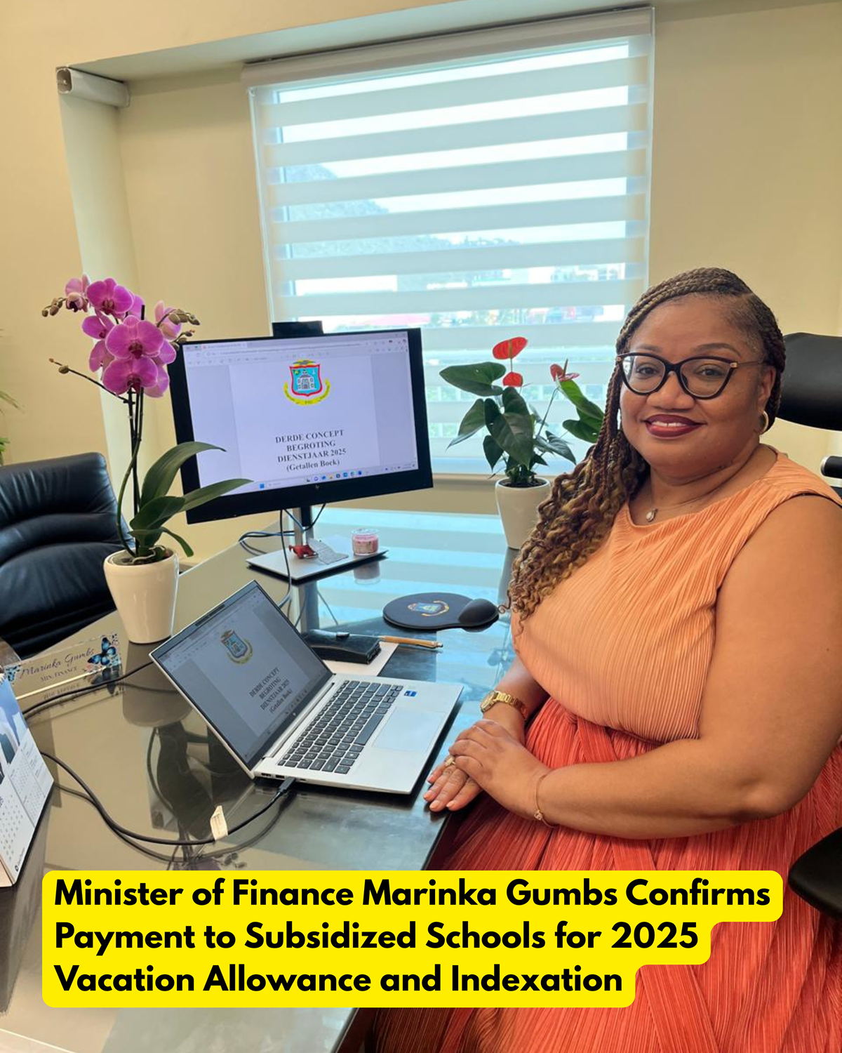 The Minister of Finance Ms. Marinka Gumbs is pleased to confirm that the additional funds related to the 2025 vacation allowance and indexation were successfully transferred to all the subsidized schools last week. These payments were made to ensure that teachers at subsidized schools receive the same treatment as those in public schools, particularly regarding their vacation allowance.