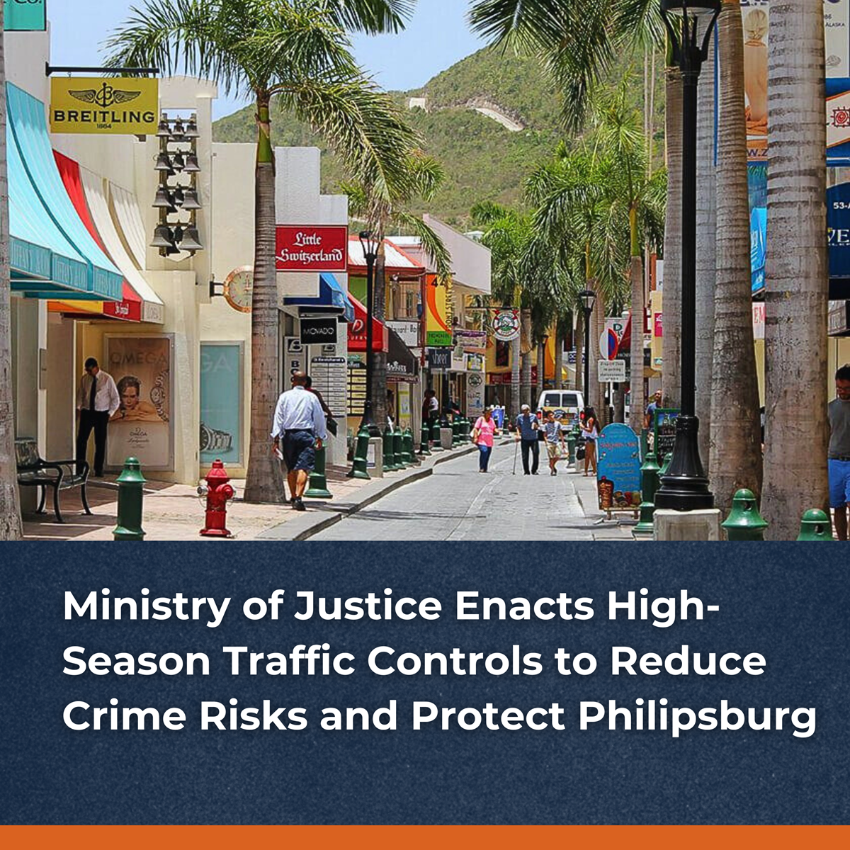 The Minister of Justice has issued a Ministerial Decree introducing immediate traffic and mobility measures in the Philipsburg area to strengthen public safety during the 2025/2026 high season. The decree was enacted in collaboration with the Korps Politie Sint Maarten (KPSM) and the Ministry of VROMI and responds directly to concerns raised by law enforcement, the tourism sector, and local businesses.